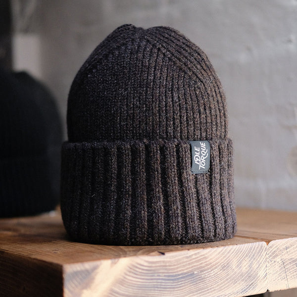 The Idle Torque ribbed beanie is an improved version of the original lambs wool beanie with 50% more wool content and is seamless 3D knitted. Like all the Idle Torque wool garments these beanies are manufactured here in Leicestershire.