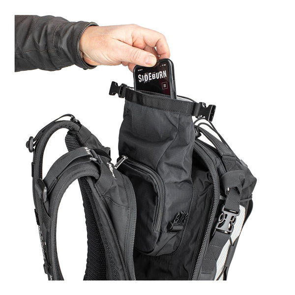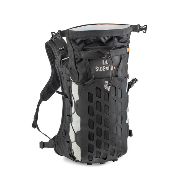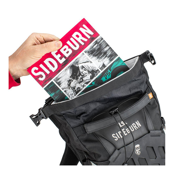 The supremely functional T18 is given a design twist in collaboration with the team at Sideburn magazine. The unique flat track tyre tread pattern of the Hypalon net and highly reflective side panels set this limited edition backpack apart, but it retains all the features that make the T18 a ‘best in class product’. It has the same dependable mix of 11-litres of roll-top waterproof storage, combined with a rear compartment, that is designed to hold a 3.75-litre hydration reservoir, tools or more.