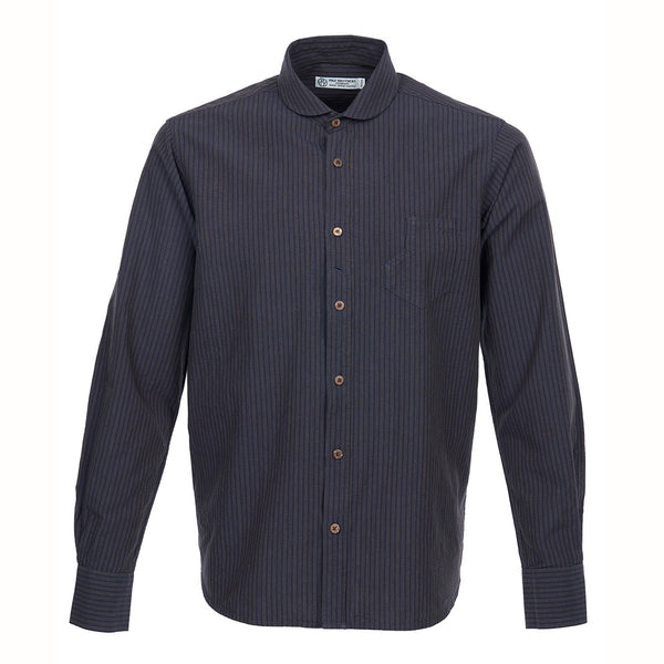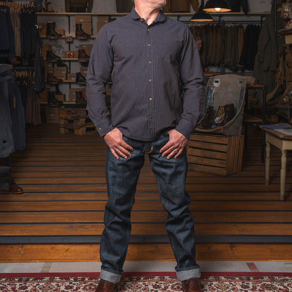 The Pike Brothers 1908 Miner Shirt is a work shirt as it was worn around the turn of the last century. Work shirts of this time usually had a semi-rounded collar and an asymmetrical breast pocket for a pocket watch. To prevent the pocket watch from getting lost, one could secure the chain to an additional buttonhole on the shirt. Our 1908 Miner Shirt also possesses these details. Pike Brothers have the fabric woven by an old Portuguese weaving mill according to an old recipe. The fabric is made of 100% cotton, beautifully robust, and easy to care for.