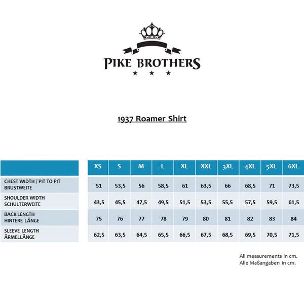 The below measurements should help you find the right size Pikebrothers 1937 Roamer Shirt.