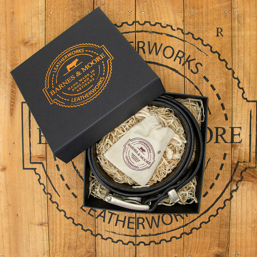 Barnes & Moore invest significant time and effort in sourcing the finest materials. Their leathers come from some of the world's top tanneries, where the pursuit of quality aligns perfectly with their own standards and ethos. These materials are then expertly made into belts, wallets and more, in the Jewellery Quarter, Birmingham.