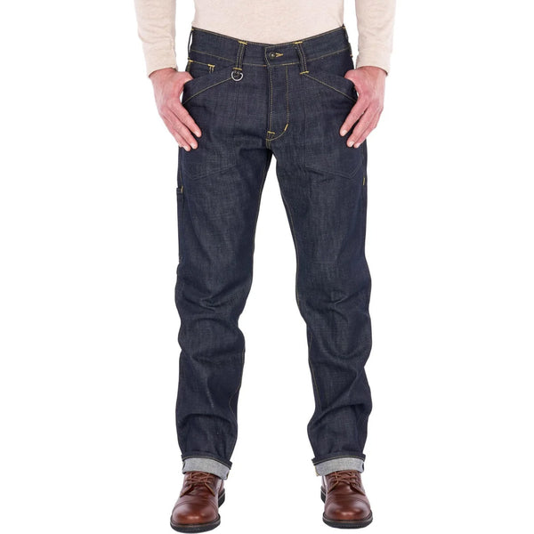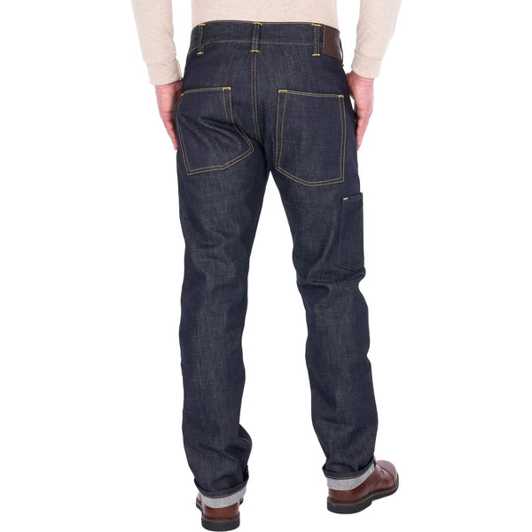 Based on a mid 1950s wood-worker pant, Pike Brothers’ 1958 Chopper Jeans feature patch pockets on the front and honey-yellow heavy cotton topstitching.