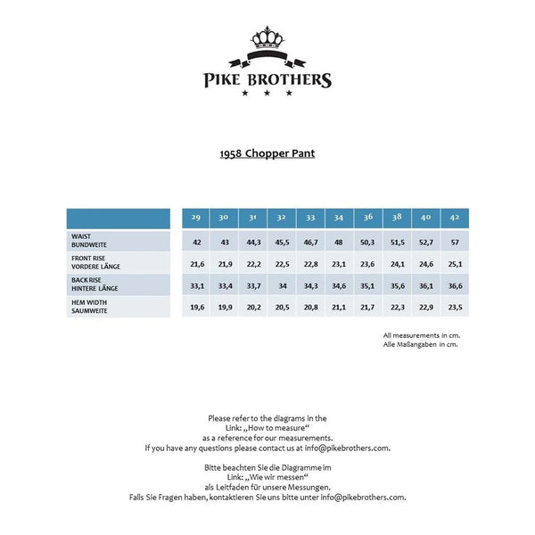 In order to get the most mileage out of your Pike Brothers Chopper Pants we strongly advise to follow the washing instructions –