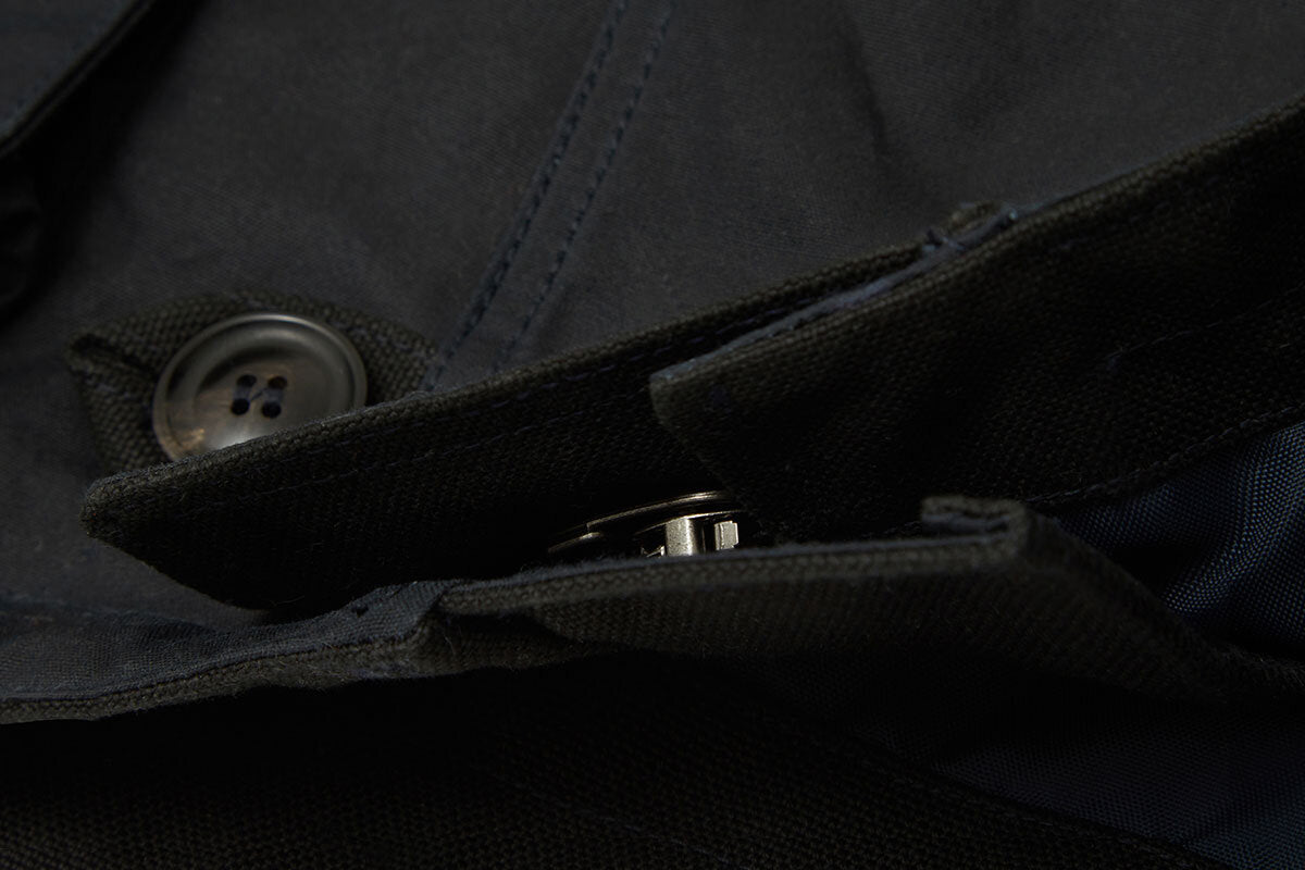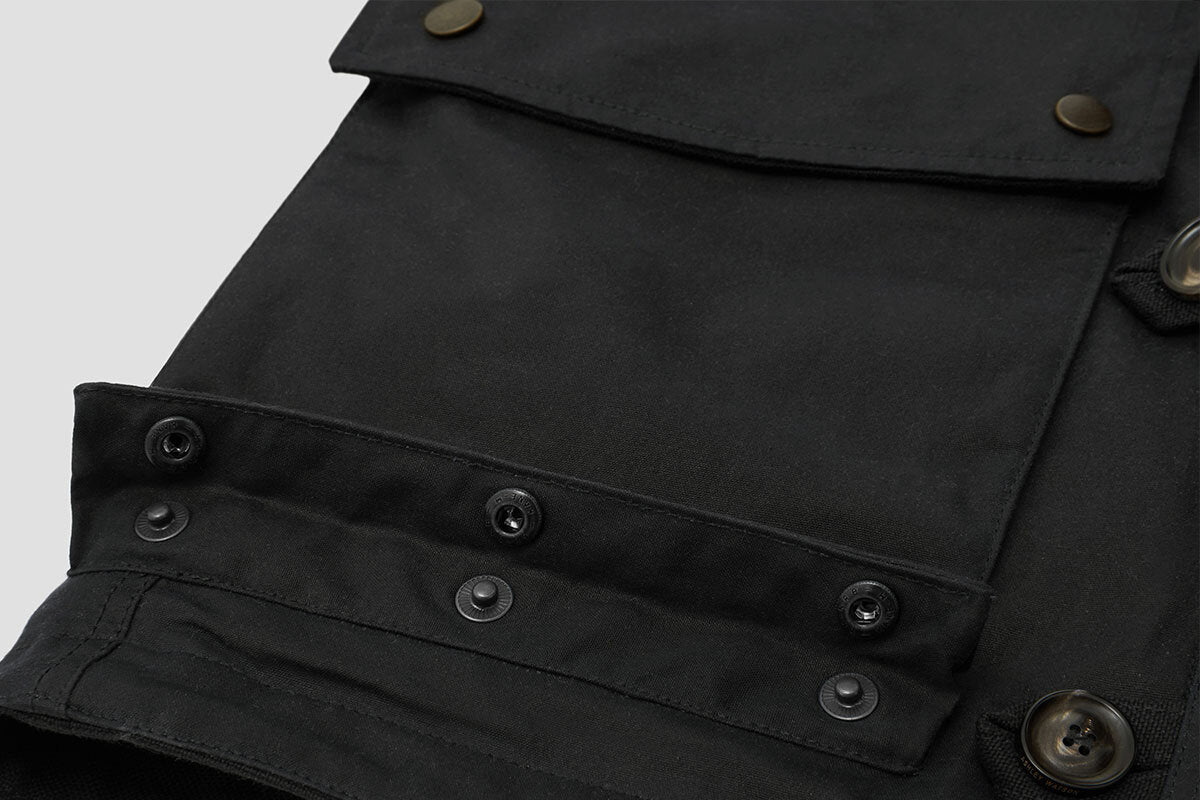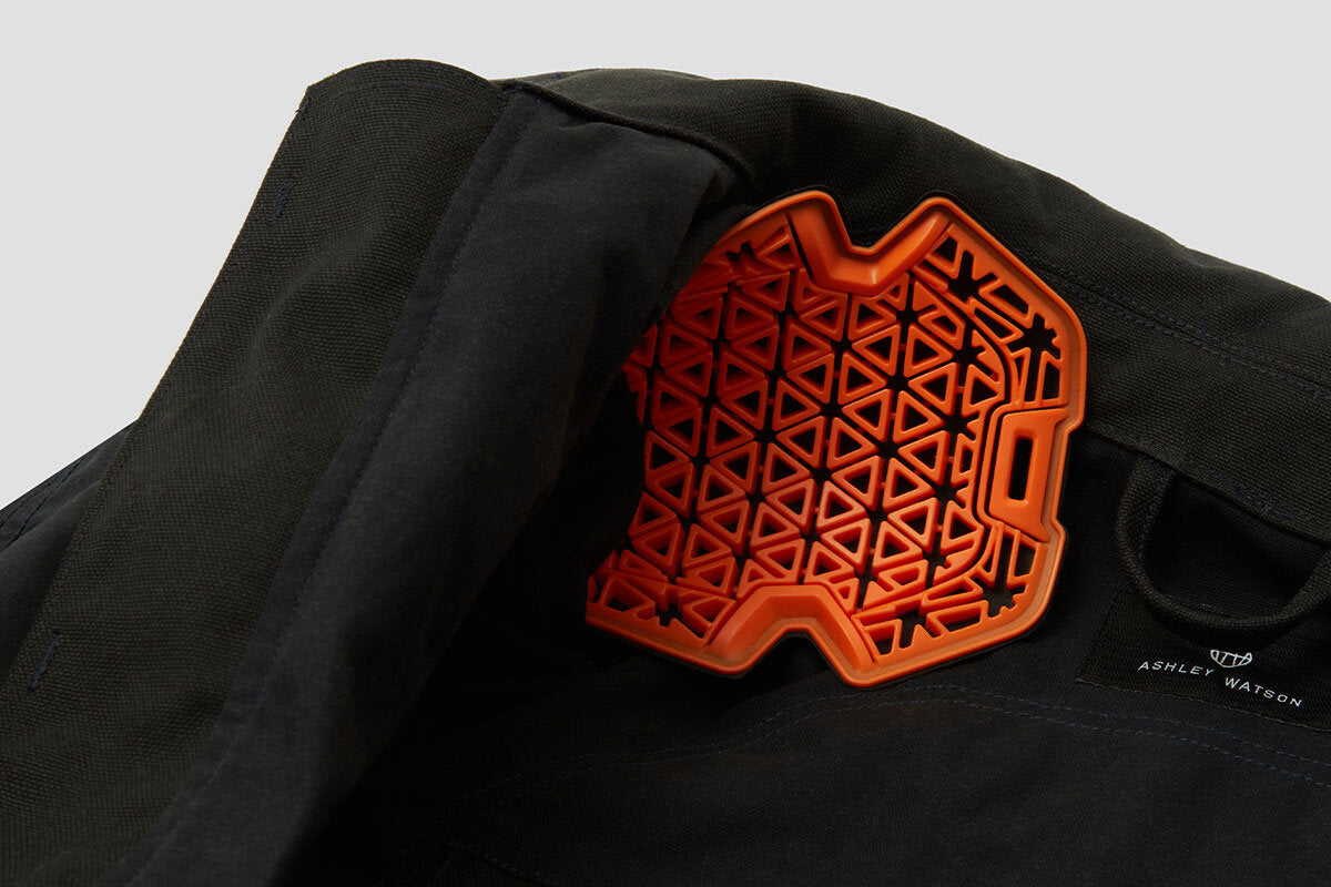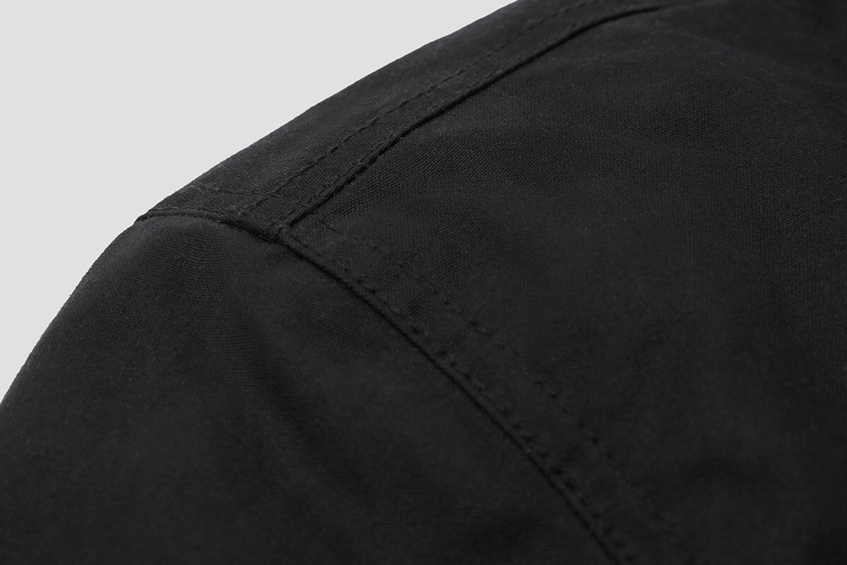 Behind the 8oz waxed-cotton outer is an incredibly strong hybrid Dyneema / Aramid abrasive resistant lining - independently tested to pass the highest AAA CE motorcycle standard. Impact protection comes in the form of removable D3O armour at the elbow, shoulder and back (all included). All seams have been engineered to withstand 12 N/m of force - the equivalent of a 1” strip of fabric holding a 30kg weight.