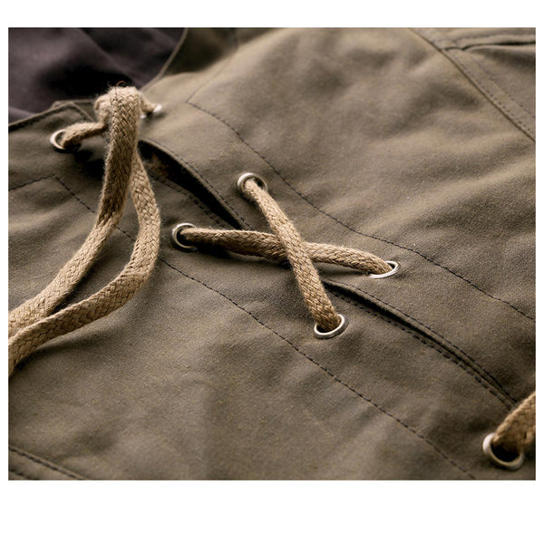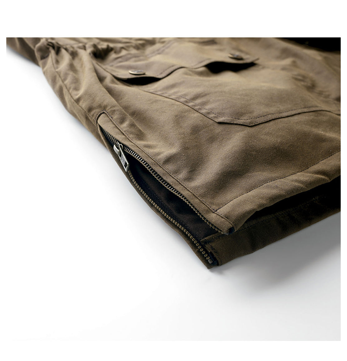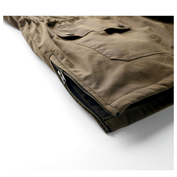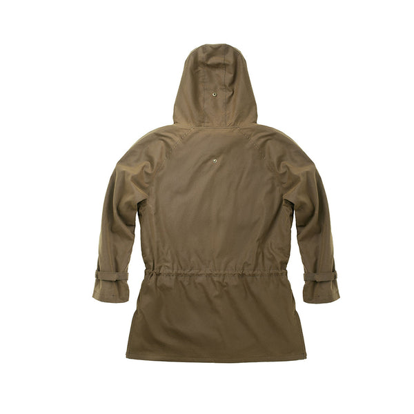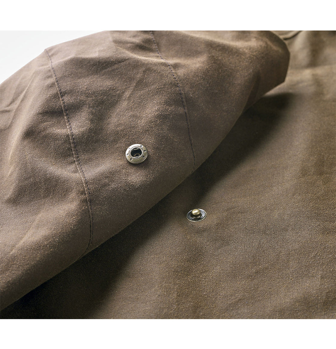A cotton raincoat, treated with water-resistant oil, that can be worn on top of your motorcycle jacket or your off-road armour. Its unique and timeless aesthetic will make you stand out from the rest, and with time its appearance will only improve.