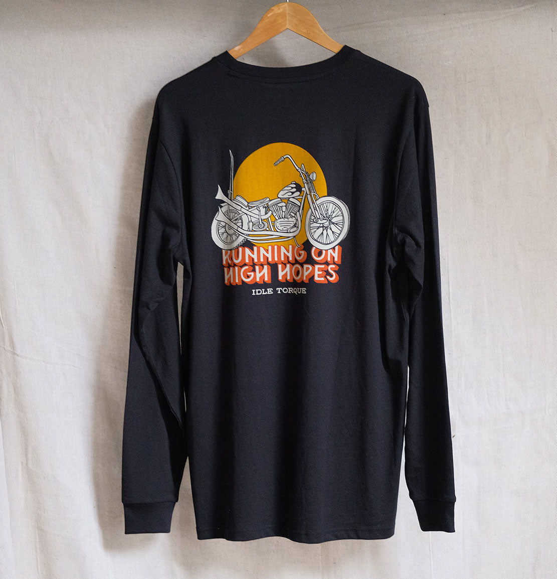 This premium unisex heavy weight long sleeve tee is made with 100% ring spun combed organic cotton with small left chest print and large Chopper design back print.