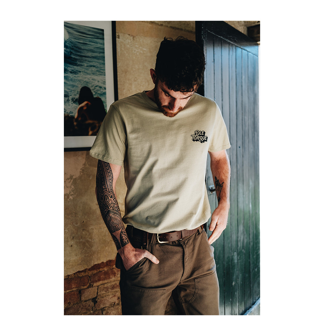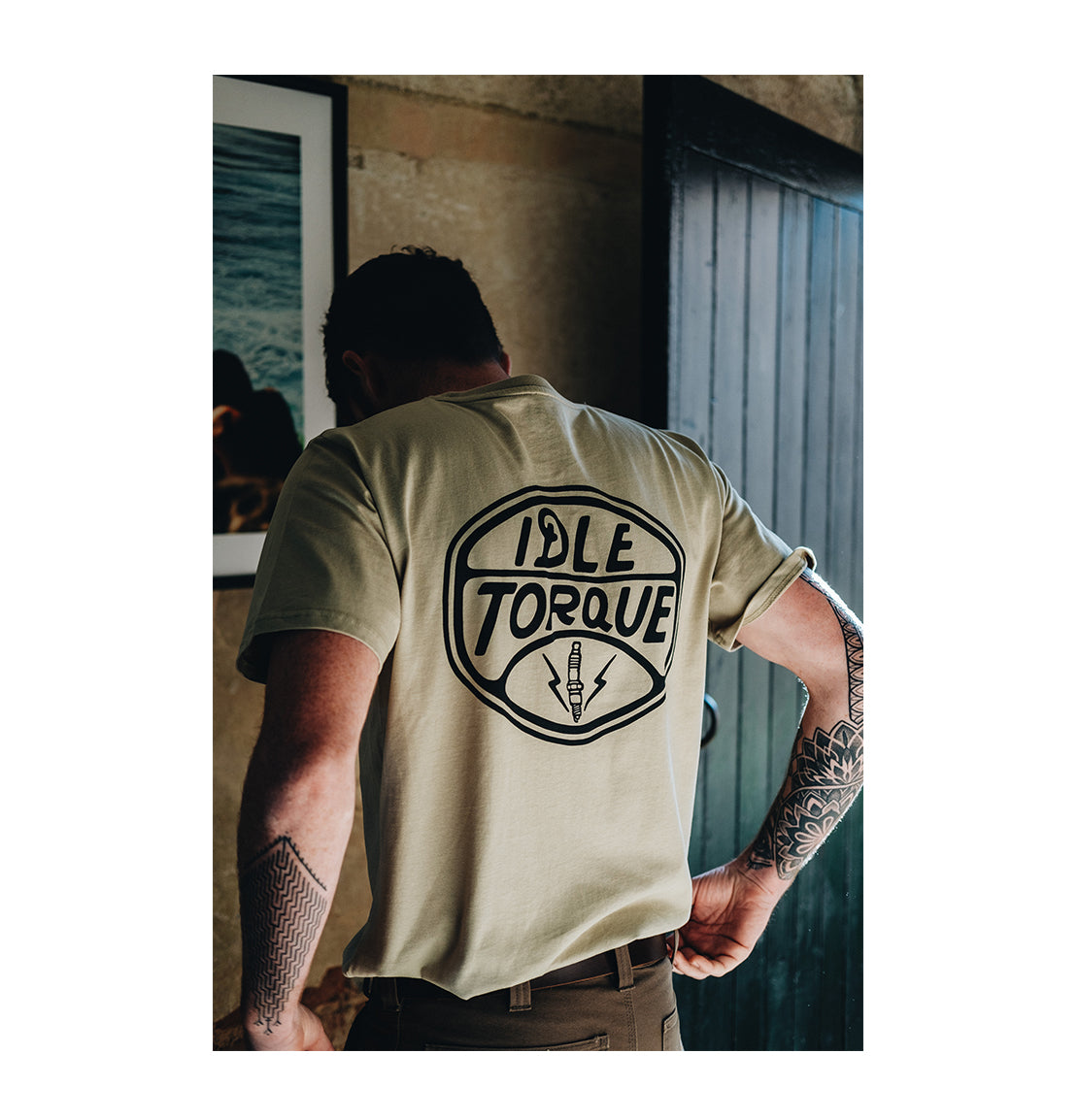 This premium heavy weight tee is made with 100% ring spun combed organic cotton with small left chest print and large Idle Torque back print.