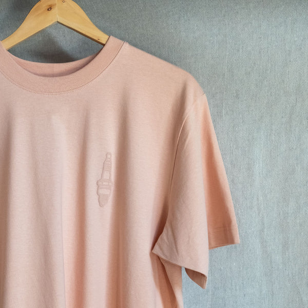 New for SS/25, a relaxed tee with a minimalist Idle Torque spark plug motif, which is puff screen printed for a 3D look and texture.