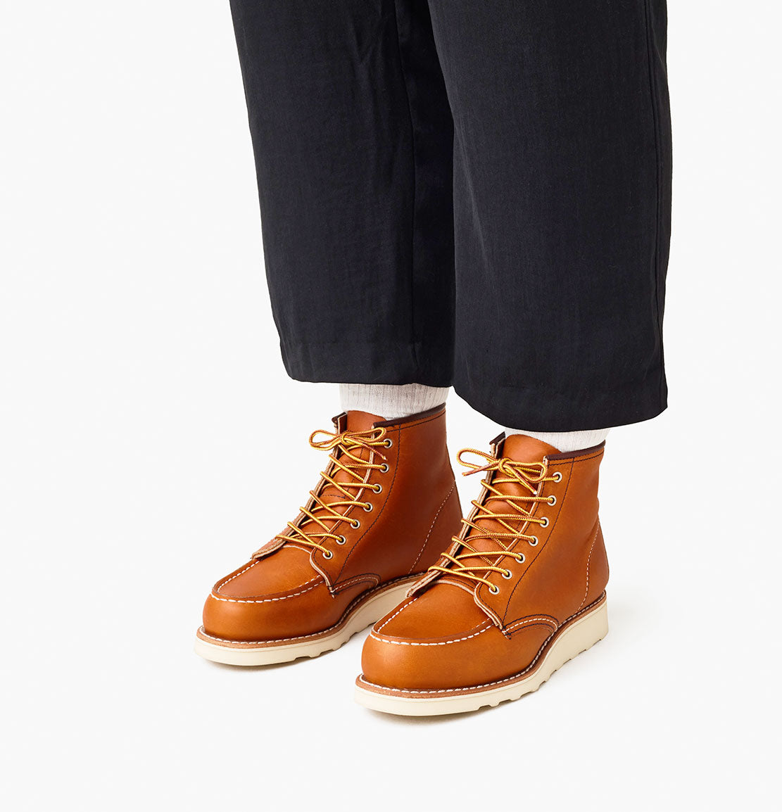 The 6-inch Classic Moc is an icon of Red Wing Heritage and is fully tailored for women. The boot's lighter, polyurethane Traction Tred outsole and unmistakable moc toe are a combination that tells a style story for more than 70 years in the making.