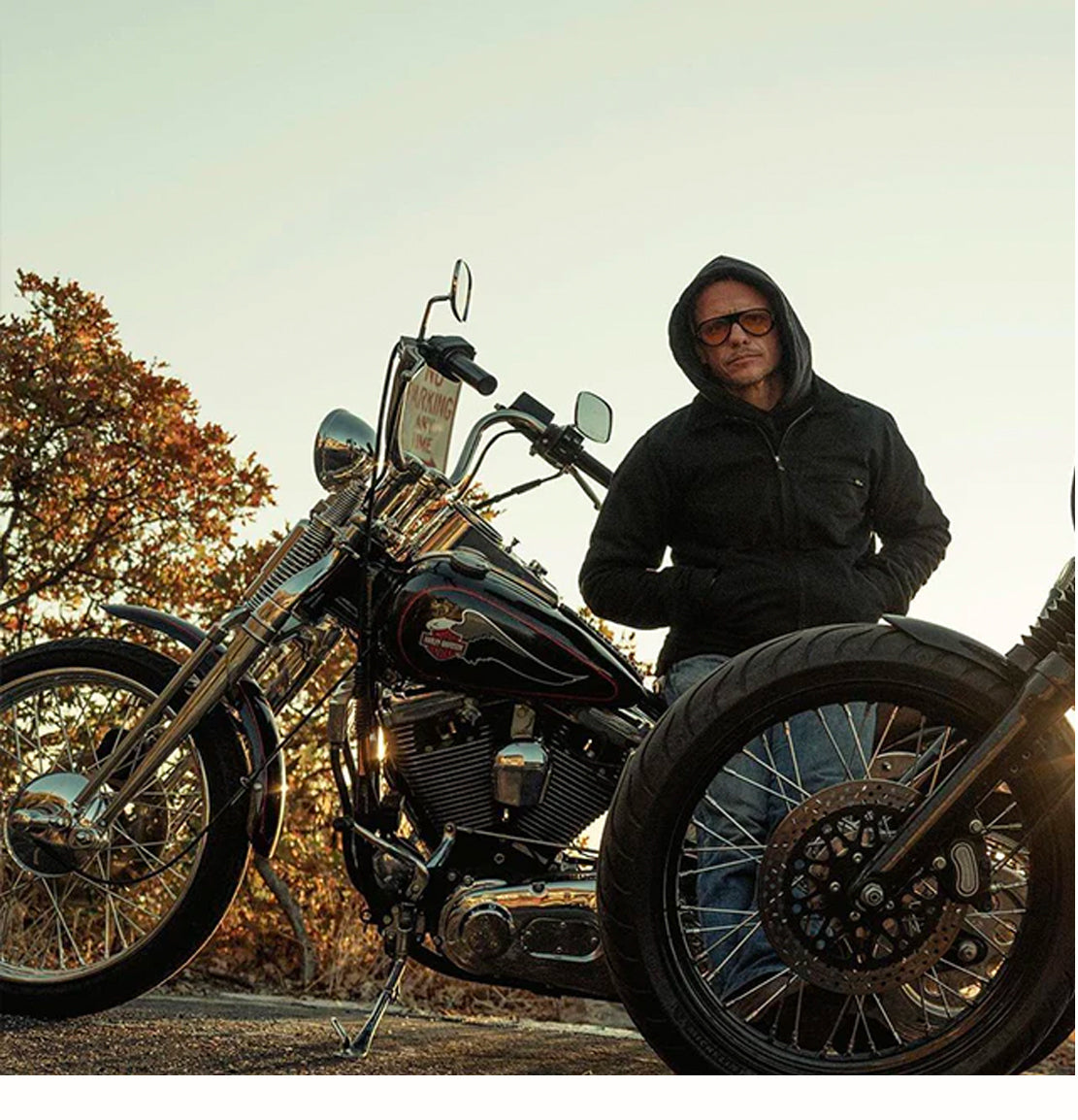 70s-inspired aviators specifically designed for all who love riding motorcycles, with Z87 safety-rated lenses, extra durable OBE hinges, and anti-reflective coating for optimal vision.