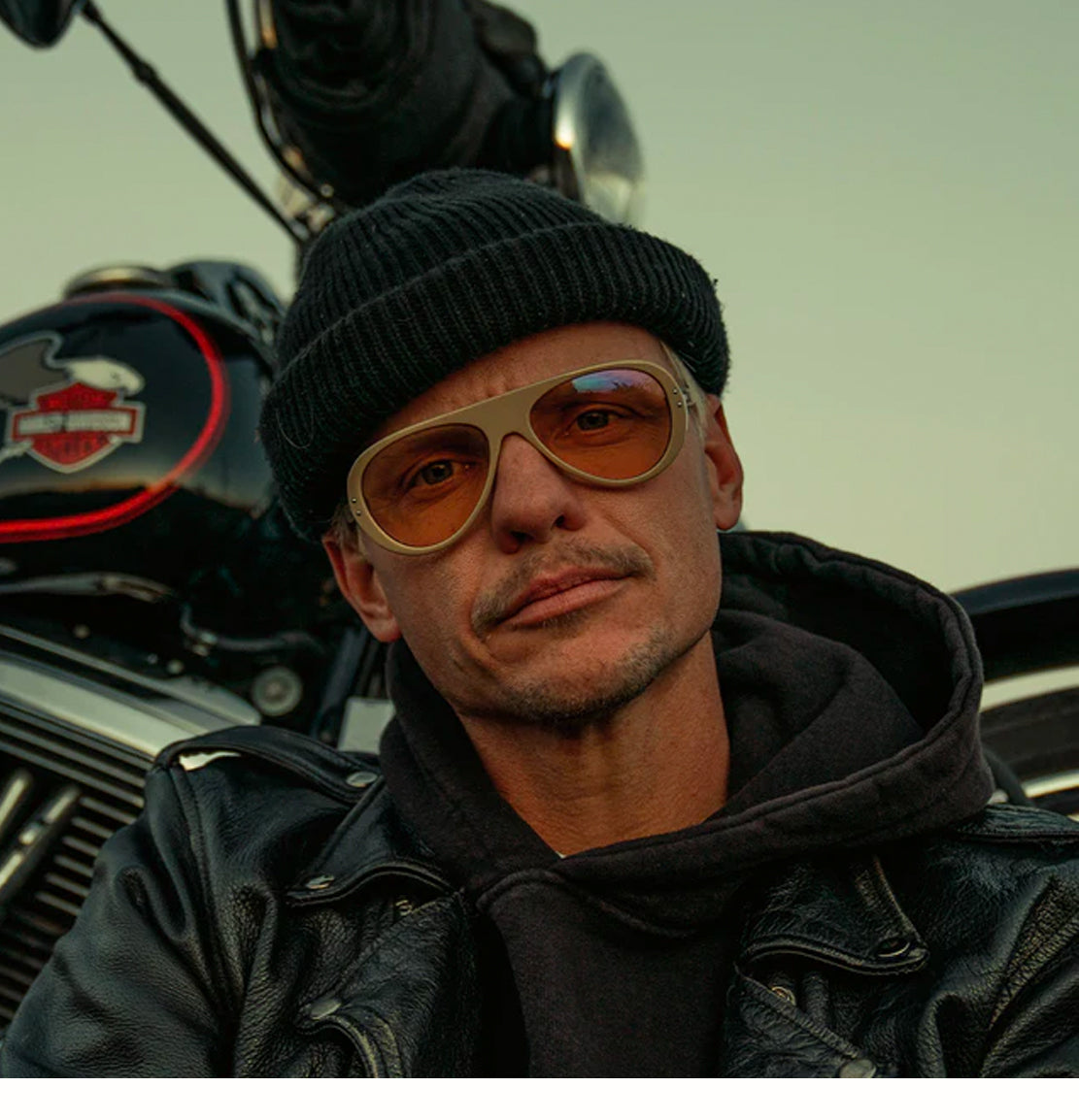 70s-inspired aviators specifically designed for all who love riding motorcycles, with Z87 safety-rated lenses, extra durable OBE hinges, and anti-reflective coating for optimal vision.